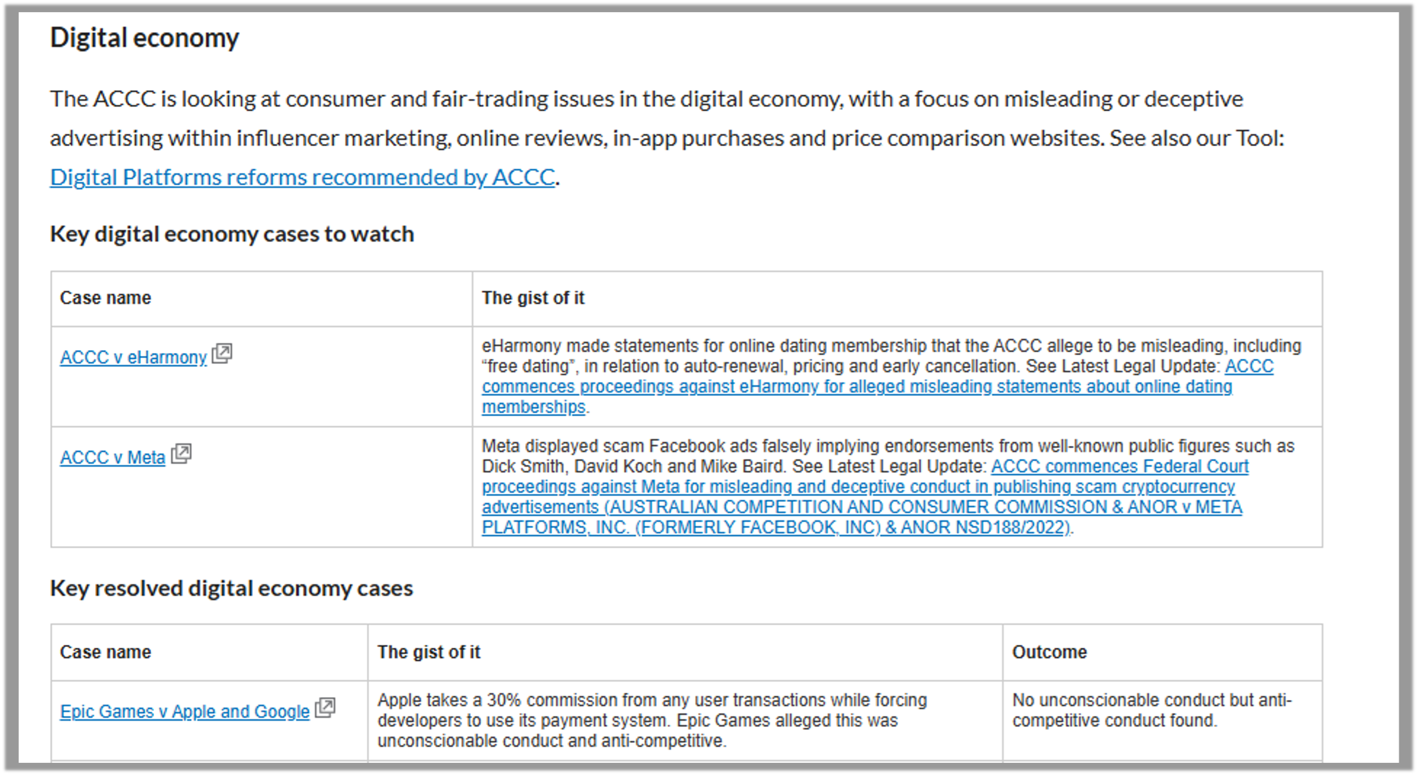 This cheat sheet tool provides high-level summaries of key recent and ongoing consumer law cases. This tool can be used to stay informed.